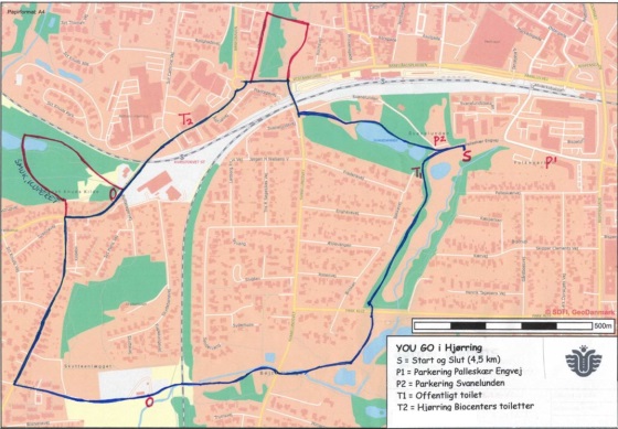 På kortet forneden kan du se mødested, parkering, toilet og ruten: